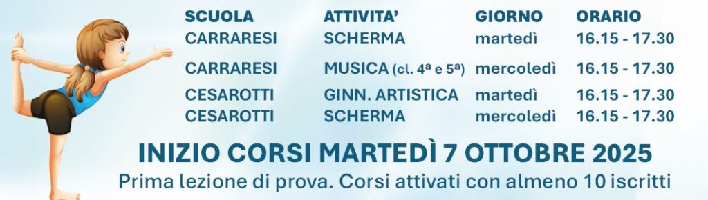 Tutti i corsi inizieranno a partire da martedì 7 ottobre 2025 e termineranno a fine maggio 2026.